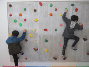 通常通りカリキュラムを行った後は、自由活動がメインになります。ボルダリングに挑戦したり、ブロックで作品作りをしたり、お友達を誘ってカードゲームをしたり、各々様々な遊びを楽しんでいます。
