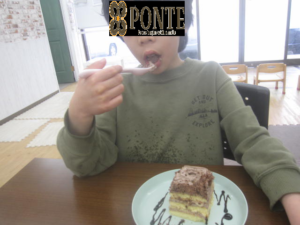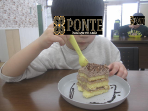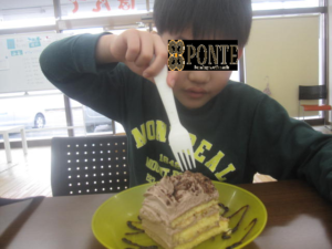最後の仕上げ係など協力して、とってもおいしいチョコレートケーキが完成しました!