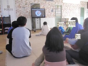 さて、今日のカリキュラムは<よみきかせ>をおこないました。