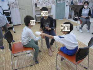 また午前中には、ぽんてラボの庭を借りて、ブランコやすべり台・砂場等で遊んできました。砂場で遊ぶ機会が中々無いからか、みんな砂まみれになりながら盛り上がっていました😊