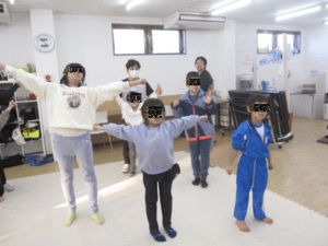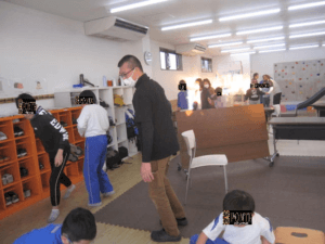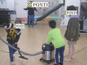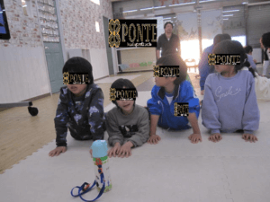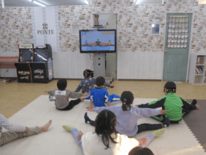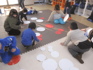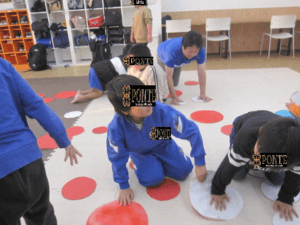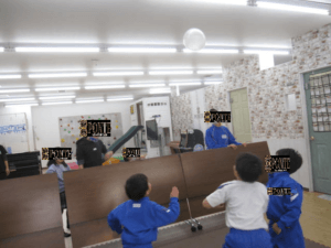 きっずの床に敷いてあるフロワーマットをみんなで剝がします。