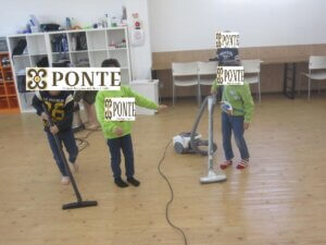 昼食を挟んで、休憩をしてから床を雑巾がけ。