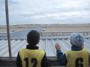 到着して、すぐ展望デッキへ向かうと、たくさんの人が🛩を待っている様子・・・予定では一便しか見られないはずなのに・・・と待っていると、自衛隊の訓練機が立て続けに4機発進するのを見ることができました!!!